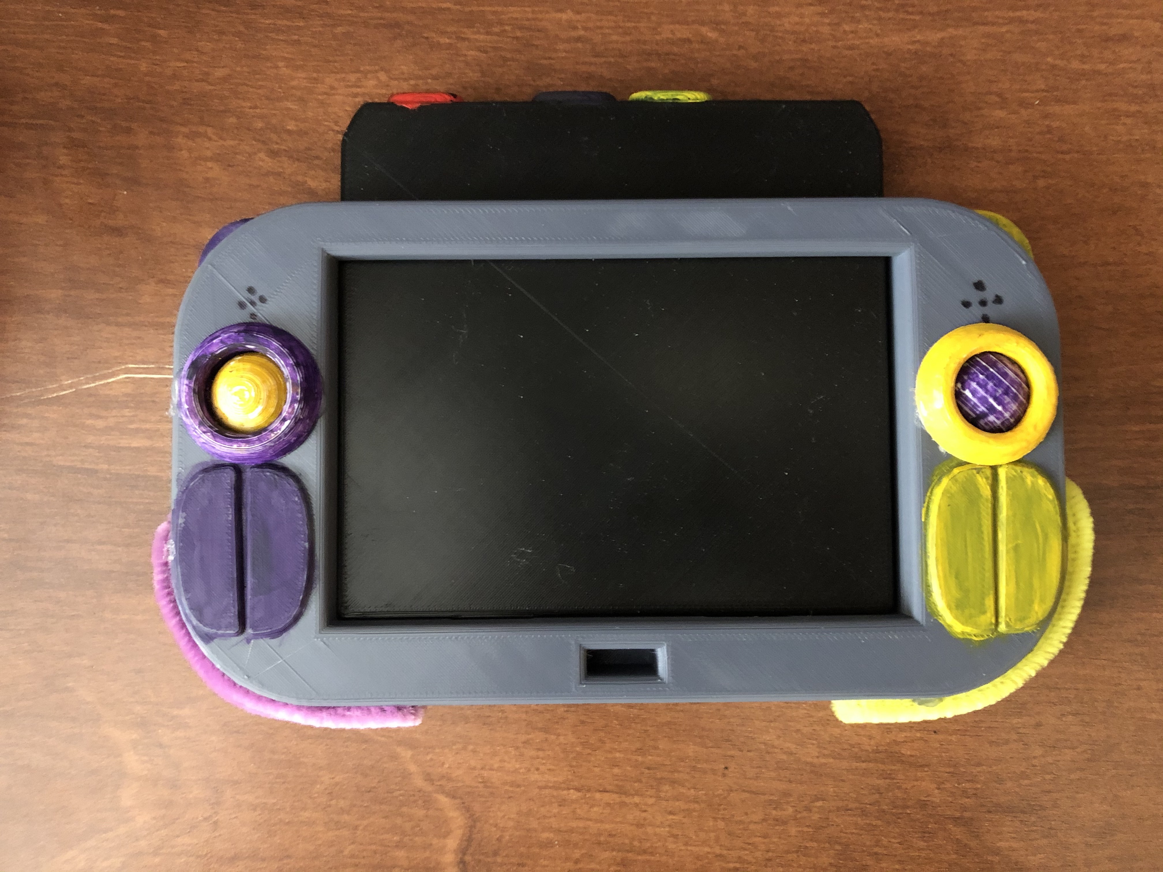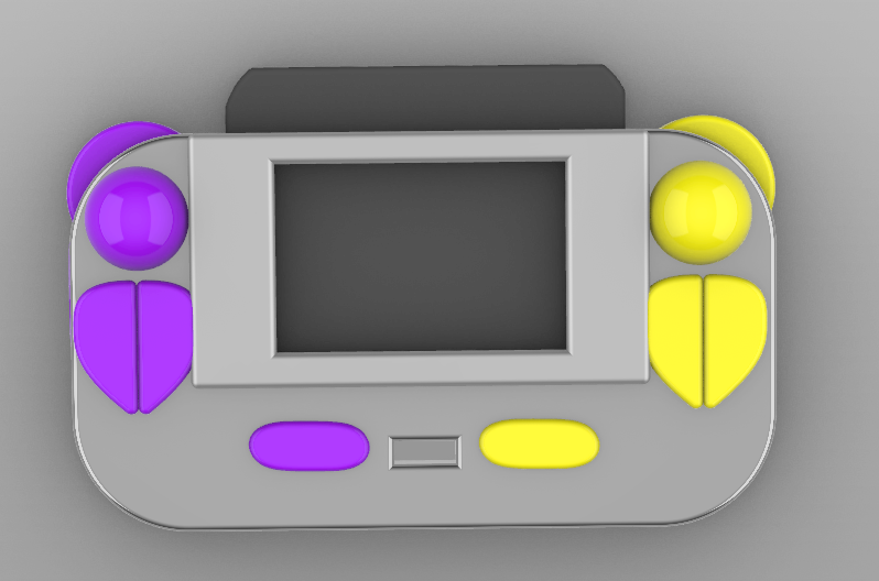 The hardware went through a few major iterations, with the first couple focusing on putting the functionality of a mouse within the form factor of a handheld. I did this since I wanted it to feel less like a video game system and closer to a traditional computer, but after user feedback and testing, I focused more on the overall shape of the design and only the most important ways the user would interact with the device.