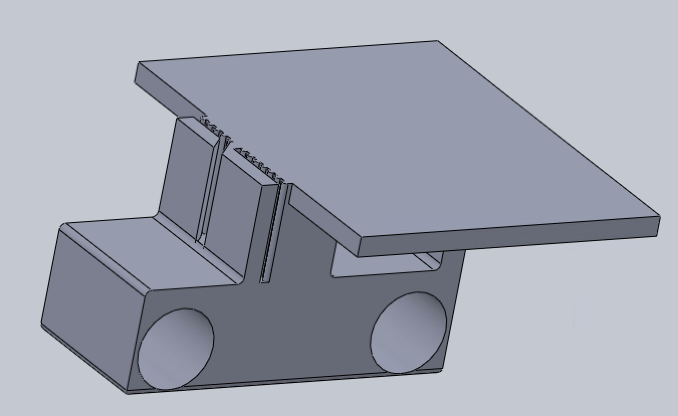 After we ideated upon the actuator multiple times, we eventually came to a design that we liked that would be able to work for all of the required functions. Once we assembled the "frame," we knew it was time to make a component that could hold the Arduino, and a component that could hold the Stylophone. I ended up designing these, and took a similar approach to both. The major change I had to make for the Stylophone version was how I printed it, as it was slightly too large to fit on the print bed. To remedy this, I cut the unit in half and printed each half separately, and we just made sure to lock it in place in the device so that the different halves were unnoticeable.