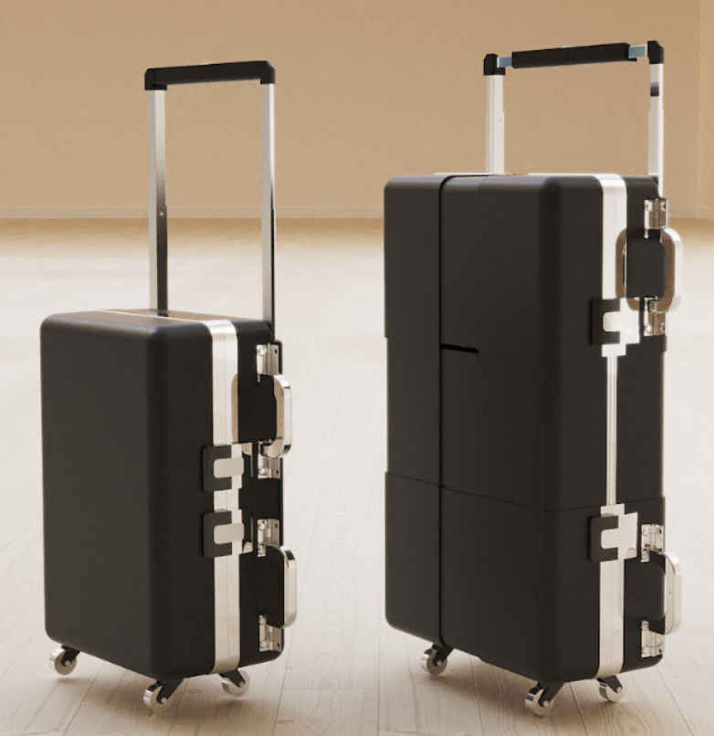 For the course "Advanced Product Design," a two semester course, three teammates and I were tasked with designing a product that would solve an issue within a broad subject area, in our case travel. After a couple of brainstorming sessions, we came up with three very different concepts, one of which was a "modular" suitcase. This design would let you switch out different components to suit specific situations, and we decided to go forward with this concept. We sent out a survey that had a multitude of questions about what potential customers might want in their suitcase, and we received about 150 responses. From this information, one thing that stuck out was that a large number of respondents wanted the ability to change the size of the suitcase. We added this as a pipe dream since we hadn't figured out what this even meant, but this data point stuck out all the same. We ended up deciding to fully focus on a size changing design, and began figuring out not only how to make it work, but if it even could work.